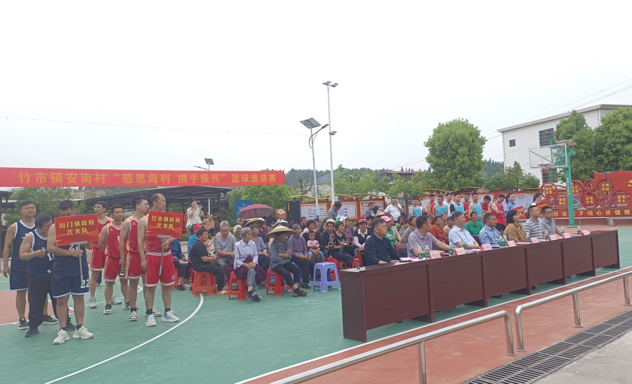会后,集团考核组一行出席了竹市镇安南村“感恩海利  携手振兴”篮球邀请赛开幕式。