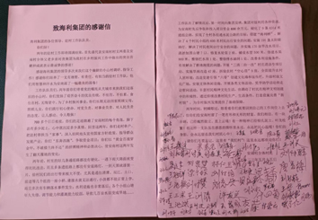 点点滴滴见真情 日日夜夜睹真心 —— 安南村全体村民写给湖南海利集团的感谢信