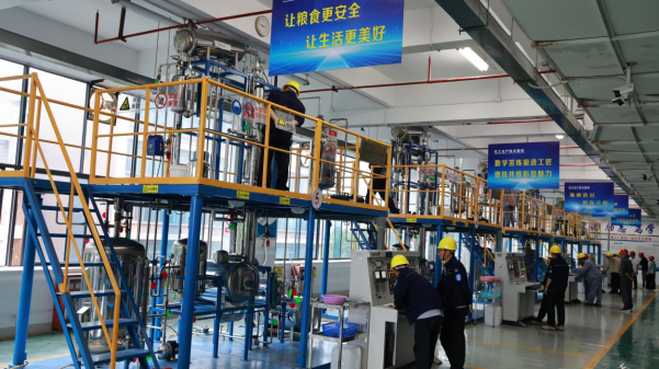 竞赛立足生产、突出实战,严把大赛规则关、理论考试关、实际操作关“三道关口”,对理论和实操分别进行考试。其中,实操竞赛设化工总控、化工检验、化工仪表维修3个大项,包括原药含量测定及其标准溶液配置、精馏操作、智能变送器调校与投运等小项。