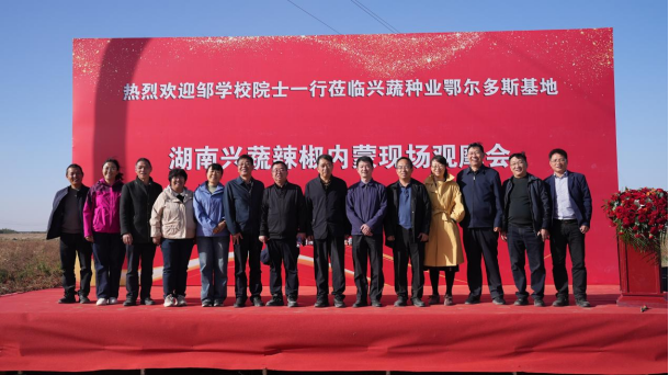 据悉,10月8日到10日,邹学校一行在鄂尔多斯、包头、包彦淖尔等地的多个兴蔬种业辣椒种植现场进行参观调研。目前,兴蔬种业已经成功在内蒙地区推广辣椒品种3万余亩,试种了二十多个辣椒品种,其中,博辣天骄60、湘干辣一号、博辣天星721三个品种均取得了较好的种植收益成果,由邹学校院士团队、湖南省蔬菜研究所和湖南兴蔬种业共同研发的博辣天星721以其惊人的抗逆性,实现了超过95%的辣椒苗成活率,为盐碱地的改良与利用树立了新标杆,赢得了广大种植户与加工企业的高度赞誉。