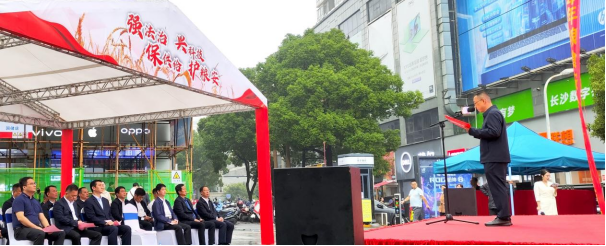 今年是《中华人民共和国粮食安全保障法》施行第一年,为全面贯彻实施粮食安全保障法,依靠法治力量为国家粮食安全保驾护航,10月16日在第四十四个世界粮食日到来之际国家粮食和物资储备局湖南局联合多家单位,在长沙隆重举办主题为“强法治、兴科技、保供给、护粮安”的粮食安全宣传周活动。国家粮食和物资储备局湖南局、湖南海利集团、省农科院、中储粮集团湖南分公司等单位领导和专家出席了展会。
