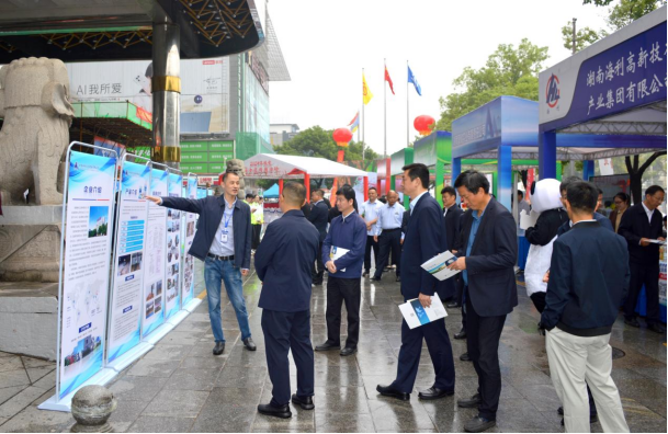 活动在斜风细雨中如期盛大启幕。主台和湖南海利集团、湖南国储实业公司等五家单位各具特色的展区为雨中的长沙秋色平添一抹靓丽风景。