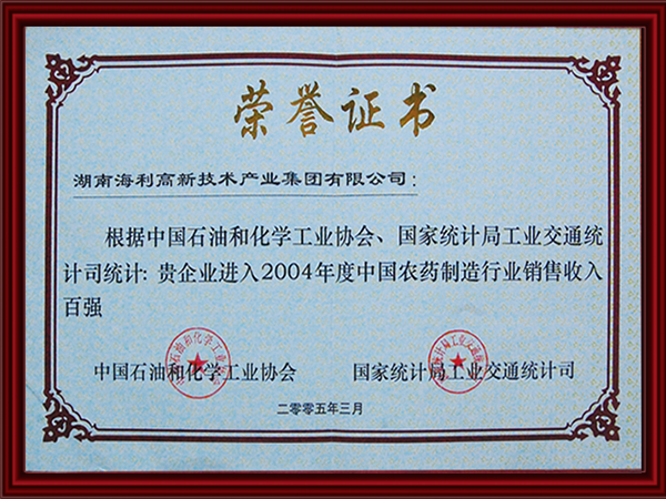 04年中国农药制造行业销售收入百强