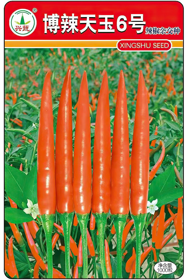 该品种为国家辣椒新品种技术研究推广中心、湖南省蔬菜研究所新育成的中熟单生朝天椒品种。生长势较强,首花节位15节左右,株高84厘米左右,果长9.5厘米左右,果宽1.2厘米左右,青果绿色偏深,成熟果桔红转红色,辣度3万左右SHU。